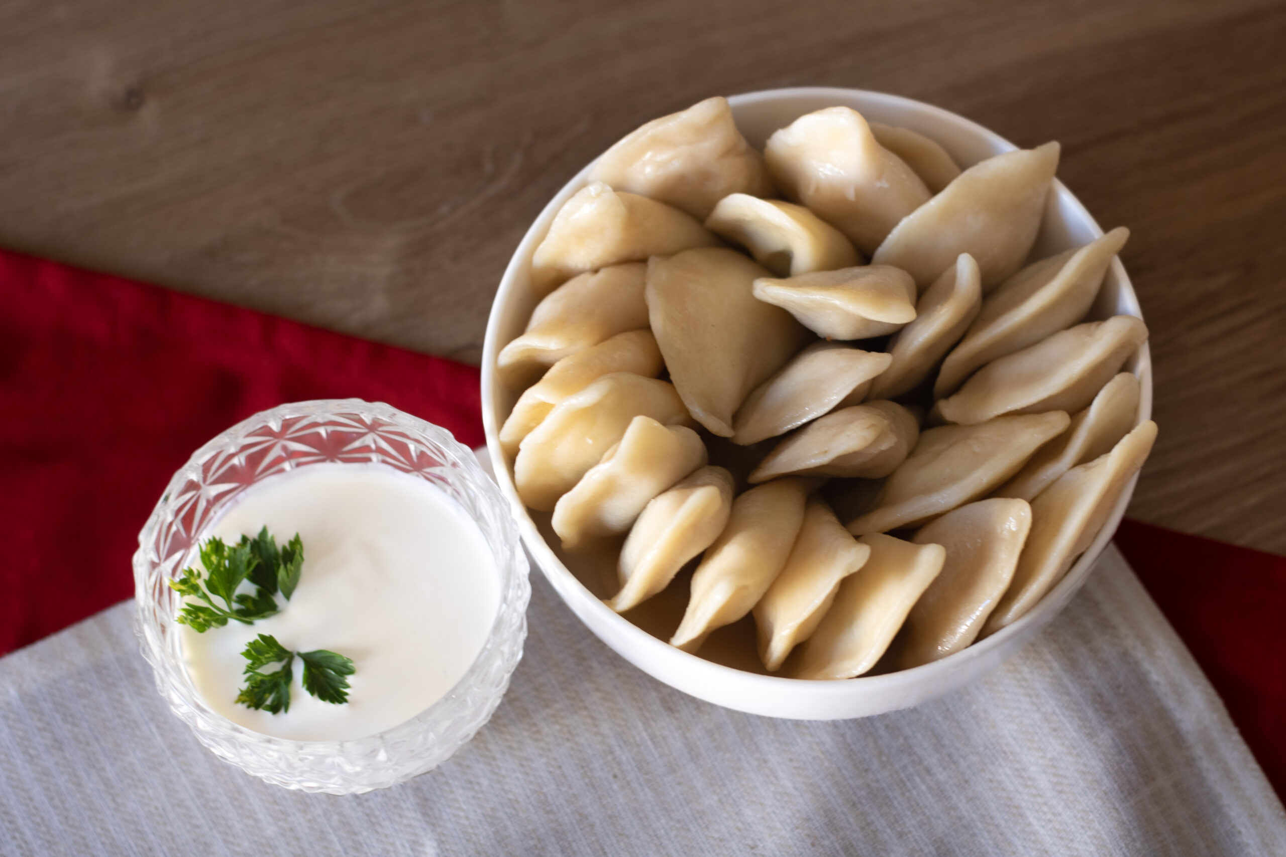 Соковиті вареники із тонкого пружного тіста. Щедра начинка з білокачанної квашеної капусти з солодкою карамелізоваою цибулею. Дбайливо приготовані за класичним рецептом. Вареники добре тримають форму. Їх можна і відварити на пару, і обсмажити до рум'яної скоринки. Поживний обід або легка вечеря швидко та просто!